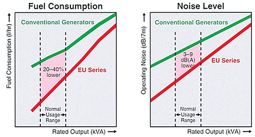 Eco Throttle also reduces the noise level on our inverter generators. Because the engine is not running at full speed constantly, it is much quieter.