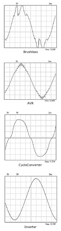 Brushless generators are among the most common in the industry because of their inexpensive construction, but have the least reliable voltage control. Brushless generators can't react to a changing load, either producing low power (a brownout) or high power . Fluctuations of this nature can cause equipment damage.