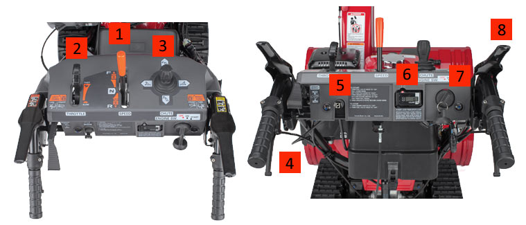 8. Interlocking drive / auger control – allows one hand to remain free to operate other controls
