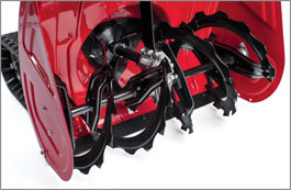 Our two-stage snow blowers are equipped with aggressive serrated ice breaking augers. This auger easily breaks through heavily crusted snow or the hard packed snow left behind by your neighborhood snow plow.